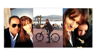 À tarde, como estava um solinho bom, fomos até à esplanada à beira rio, onde a F. se deliciou a andar na sua bicicleta, enquanto eu e o R. bebiamos um sumo e o G. se deliciava a observar tudo e todos.